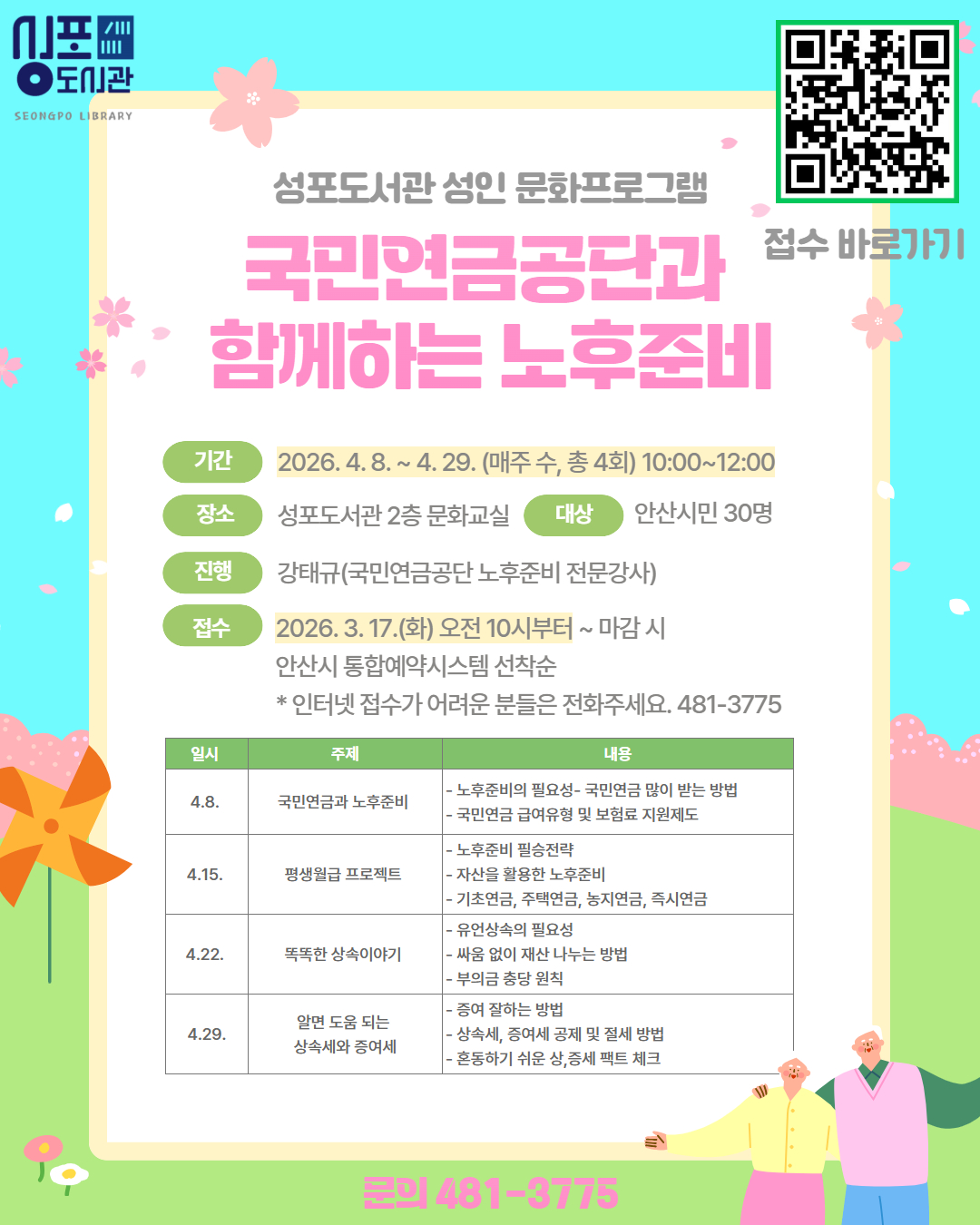 현재 접수중입니다. 안산시 통합예약시스템 인터넷 접수 혹은 전화접수 가능 ☎481-3775