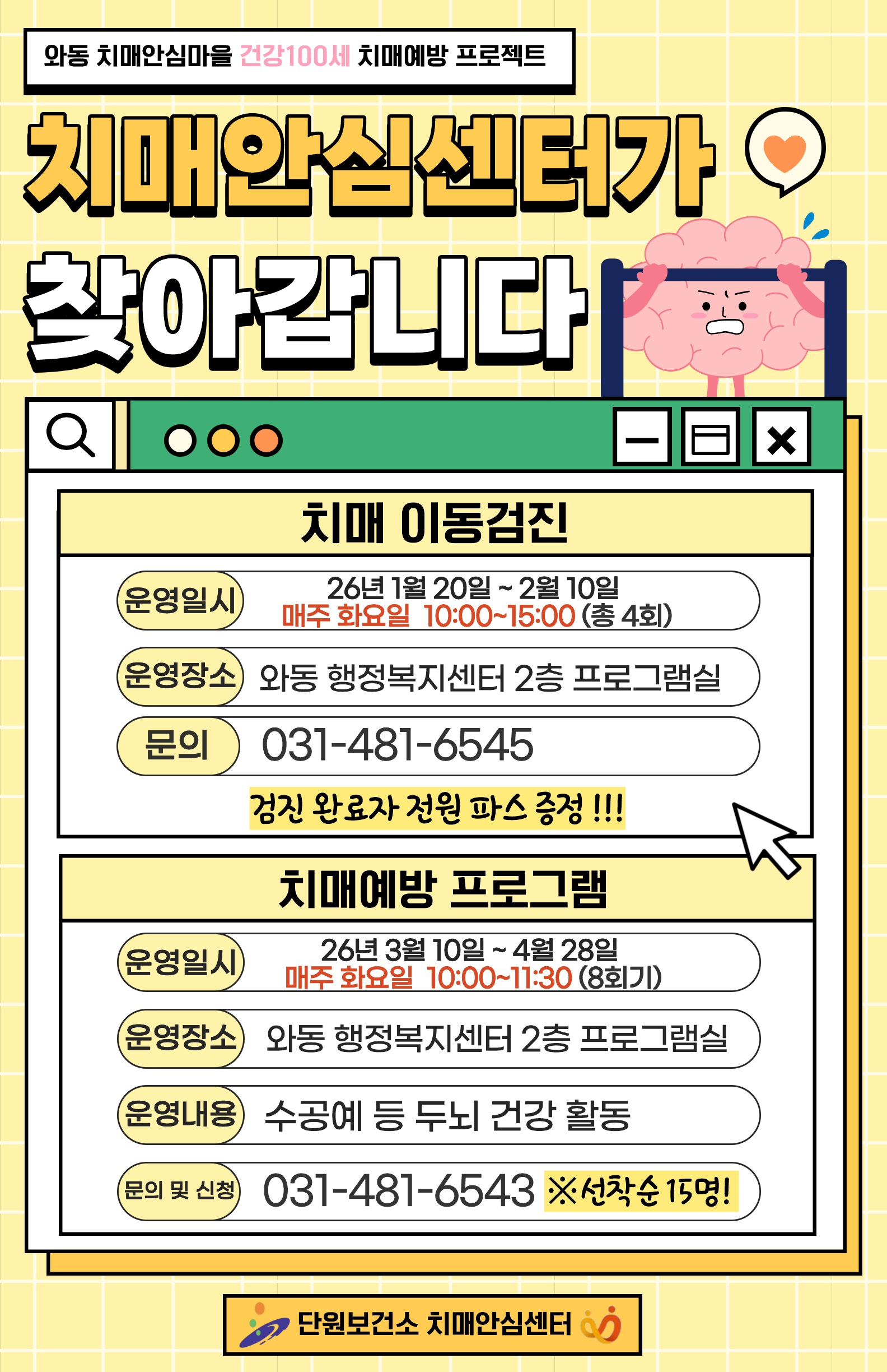 문의사항: 단원치매안심센터 ☎031-481-6541