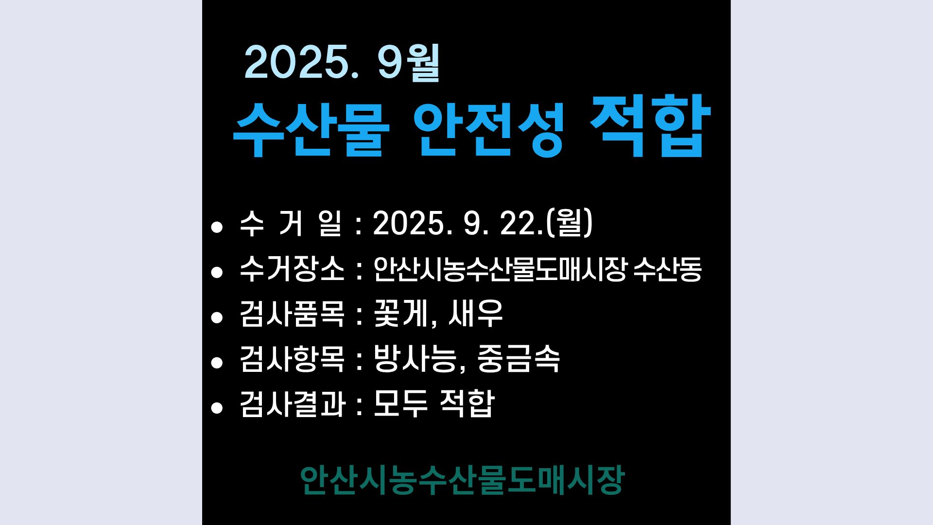 2025년 8월 수산물 안전성 검사 결과 적합(위생정책과)