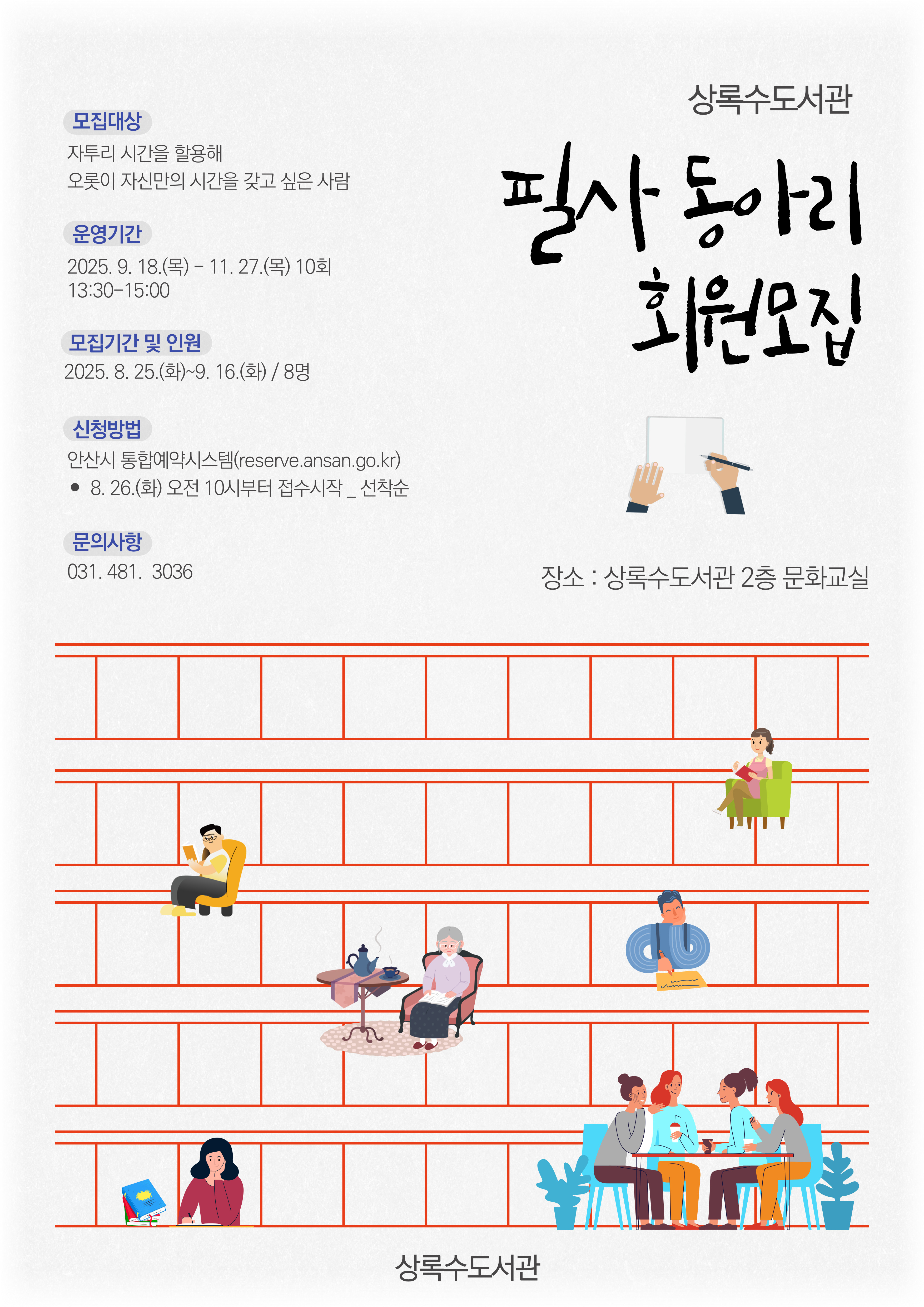 상록수도서관에서 2025년 필사독서동아리에 참여하실 분을 모집합니다.