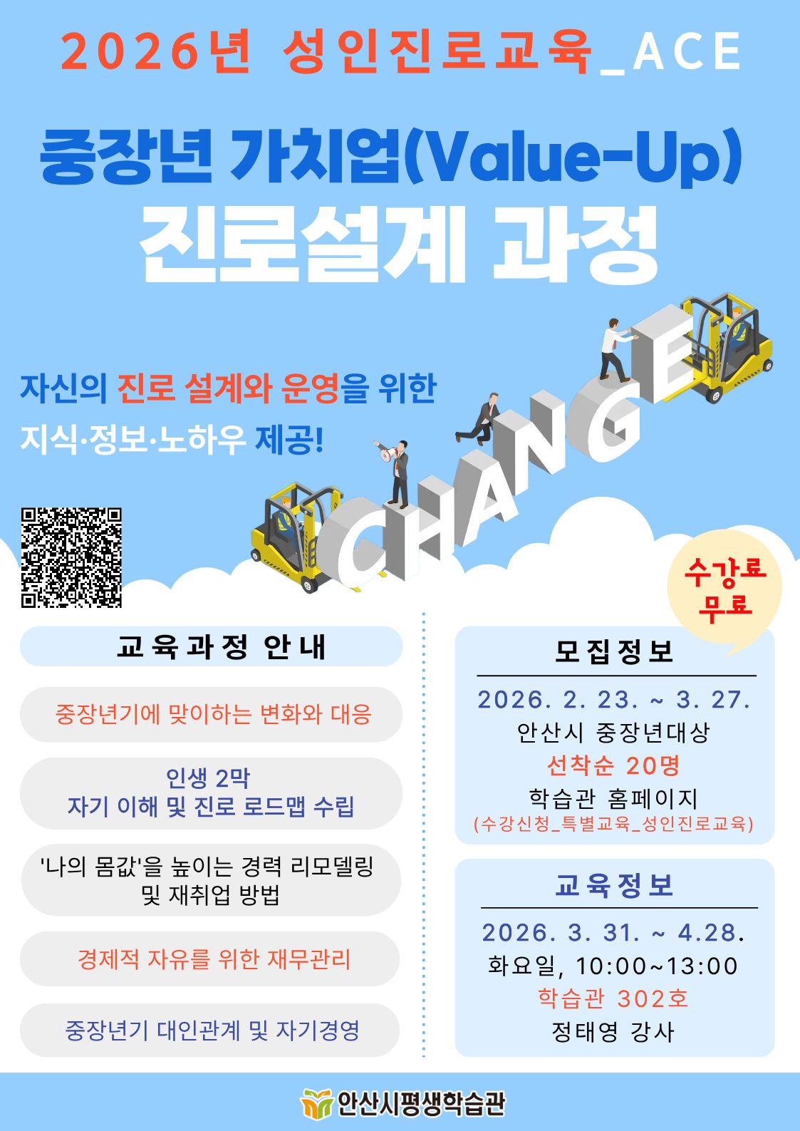 안산시평생학습관에서는 성인대상 성인진로교육_ACE프로그램을 아래와 같이 운영하오니,